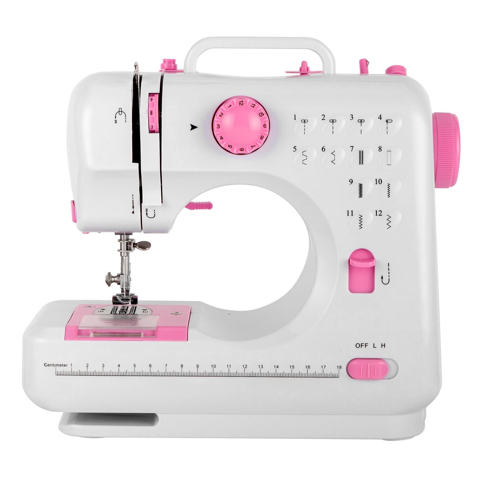 Fhsm 505 Sewing Machine Crafting Mending Machine Portable With 12 Built In Stitches Household Electric Small Desktop Multifunctional Seaming Machine Reversing Manual Sewing Machine White Pink Walmart Com