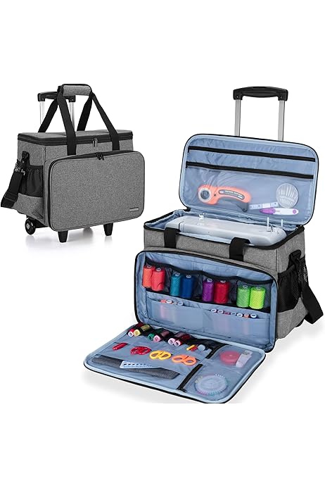 Amazon Com Lorzon Sewing Machine Case With Wheels Rolling Sewing Machine Tote For Carrying Fits For Most Machines Arts Crafts Sewing
